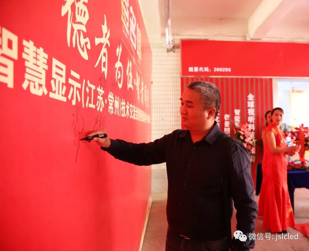 江蘇亮彩電子有限公司總經理章九余先生、利亞德渠道中心副總經理吳斌先生、今創集團(股票代碼603680)董事局主席俞金坤和常州市工商聯副主席韓紅衛女士共同上臺進行揭牌和授牌儀式。